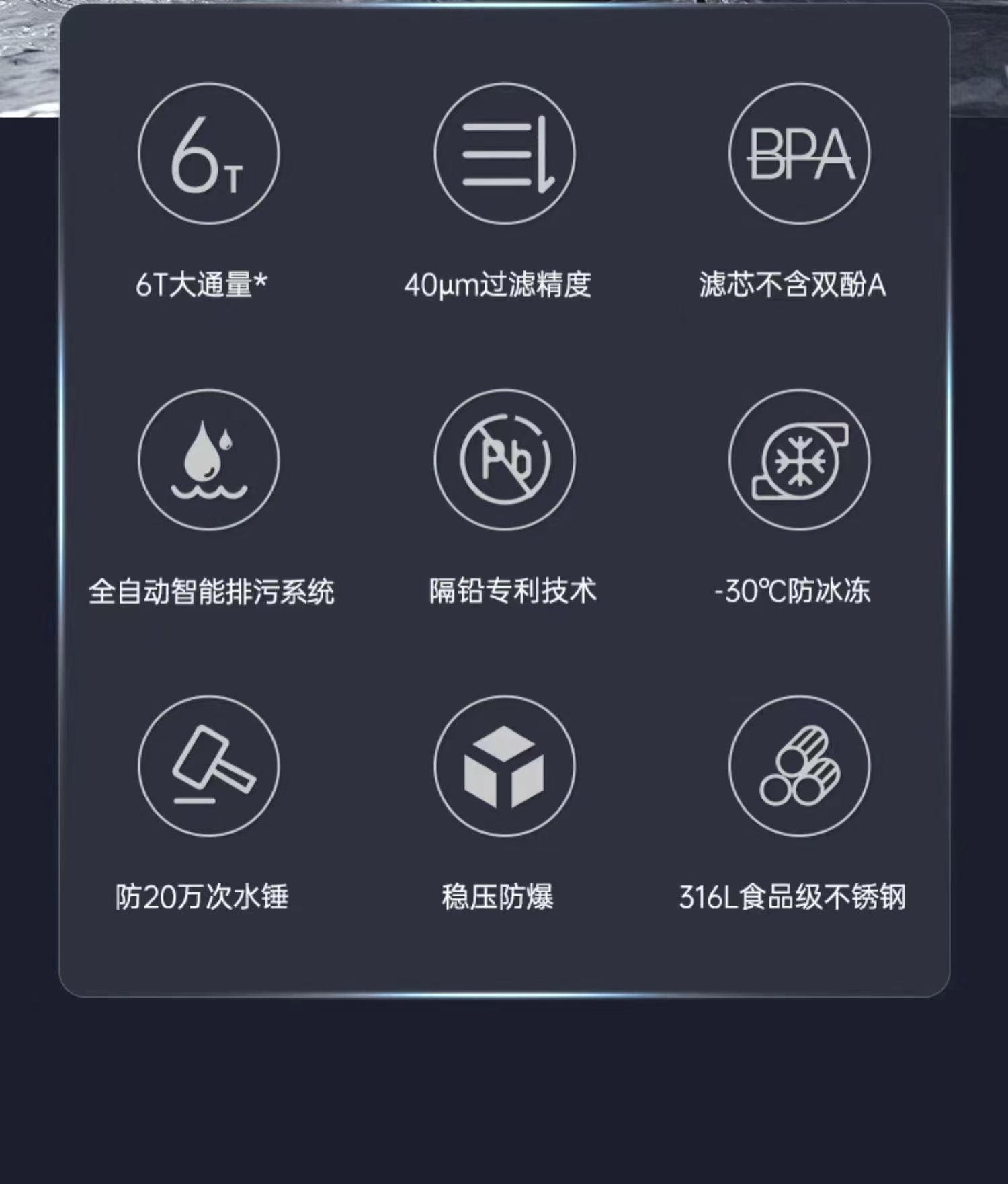 ②同等通量的叠片式前置过滤器与钢网式前置过滤器对比,叠片式前置过滤器的总产水量式钢网式前置过滤器的两倍以上,详细对比数据可见《中国家用电器研究院检验报告EWCjs-21-557-G2》。